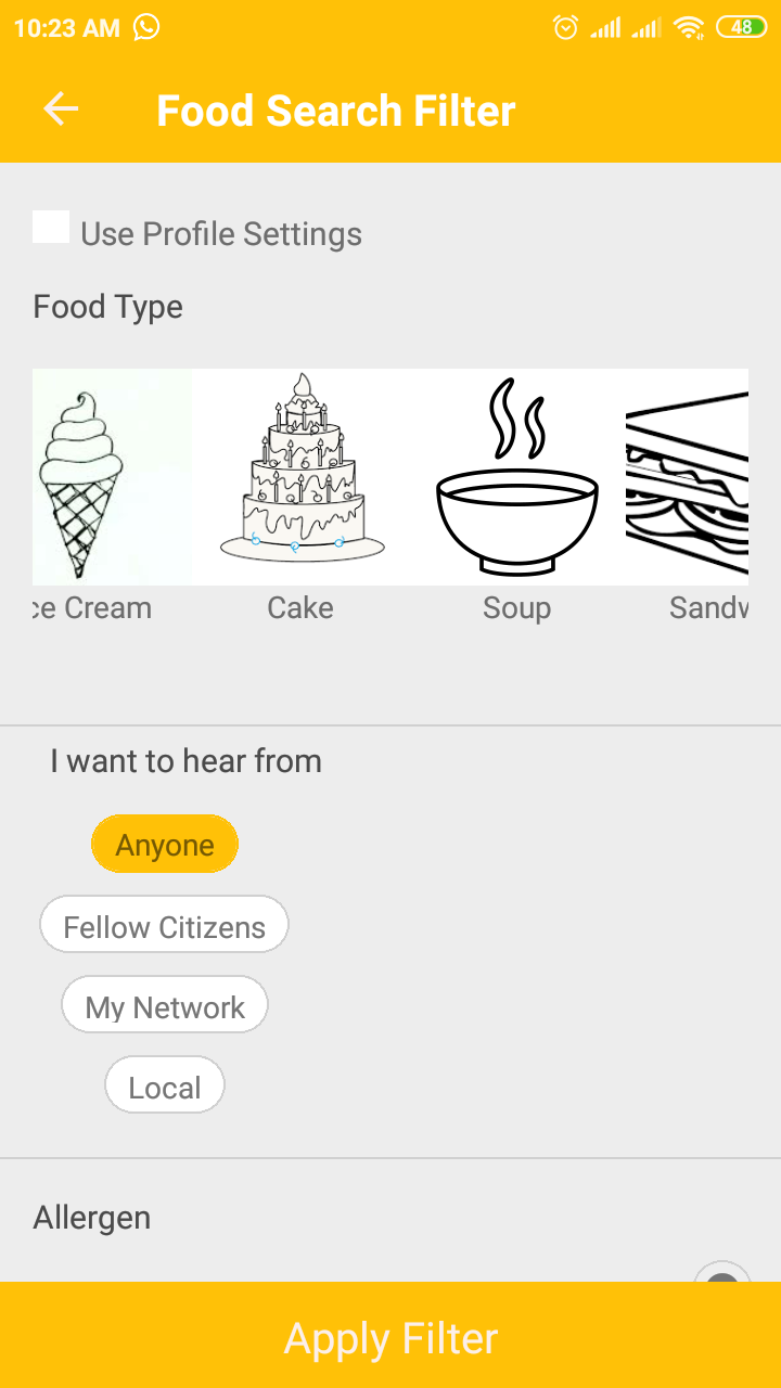 Foodie Syndicate, main home screen